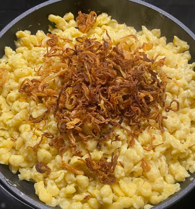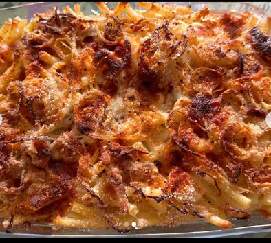 Rösti mit Kalbsbratwurst und Zwiebelsauce